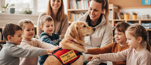 In unseren Kursen für Schulen und Kindergärten vermitteln wir Kindern einen sicheren, respektvollen Umgang mit Hunden.